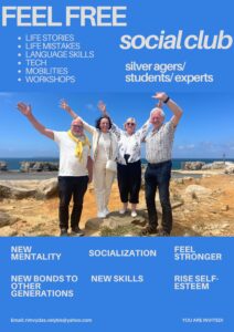 Focusing on Silver Agers, the group came up with the Feel Free Social Club idea. Here, people of all ages can connect, exchange and learn from each other. Older people have the chance to share their stories and wisdom, giving younger people the opportunity to learn from them and their experiences. But also young people get the chance to share their knowledge and e.g. help older people with technology.